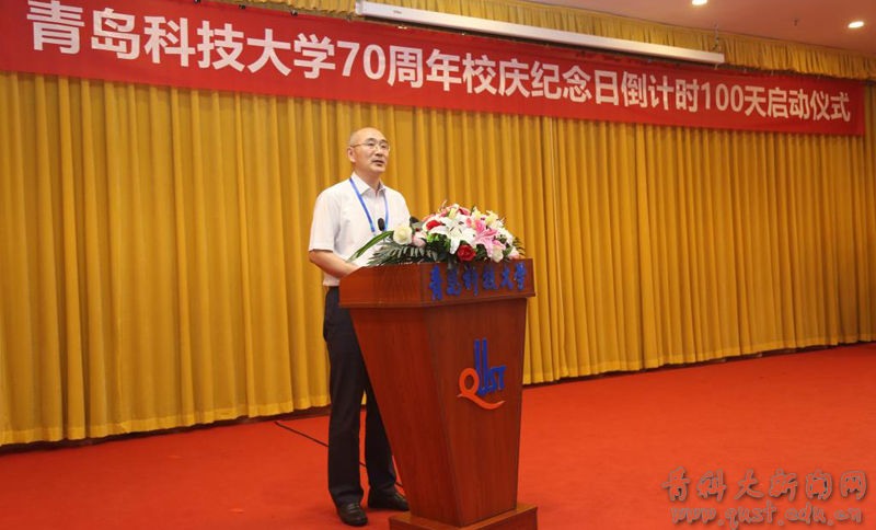 6月11日上午,w88win体育官网入口70周年校庆纪念日倒计时100天启动仪式在崂山校区第三报告厅隆重举行。