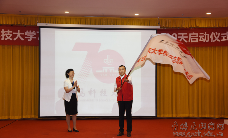 党委副书记张淑华宣布70周年校庆志愿者服务团成立并向志愿者代表授旗。