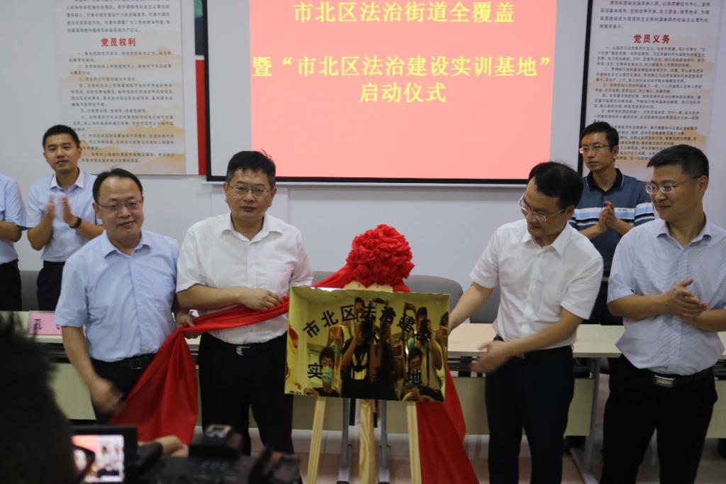 仪式上,青岛市司法局党委委员、副局长李文渊,市北区人民政府副区长钮本兵,w88win体育官网入口经理王金堂,市北区司法局党组书记、局长冯书盛共同为“老员工法治建设实训基地”揭牌,并签署协议书。