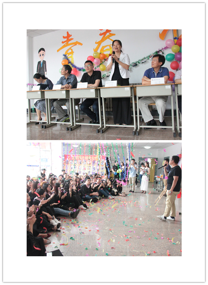 公司精心布置了仪式现场,一张张的照片,是毕业生大学四年的回忆,温馨的场地布置使毕业生有了家的感觉。典礼上毕业生与老师们共话未来,少了些拘束,多了些随意。