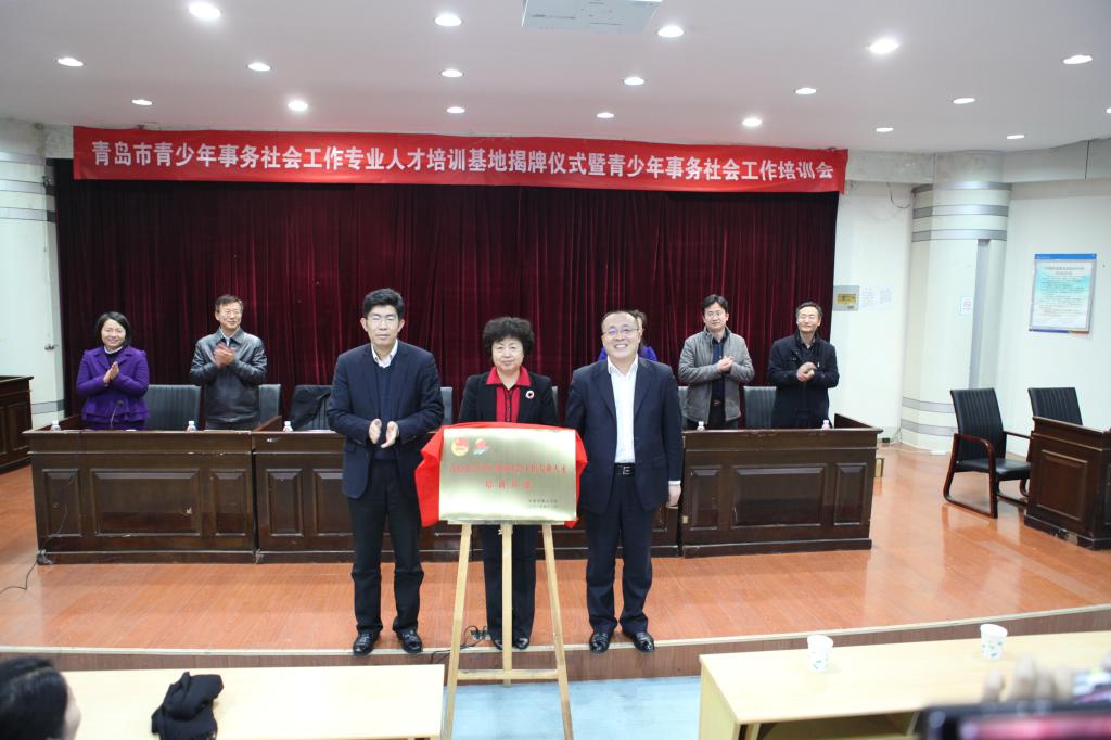 12月1日下午,由w88win体育官网入口与团市委共建的青岛市青少年事务社会工作专业人才培训基地揭牌仪式在w88win体育官网入口模拟法庭举行。公司党委副书记王瑞芳、团市委副书记张海军和市北区副区长高波共同为培训基地揭牌,团市委权益部部长刘文华和w88win体育官网入口书记兼经理张鸣代表双方签署合作协议,w88win体育官网入口团委书记王峰业、w88win体育官网入口经理助理赵玉增、社会工作专业教师和员工代表、部分青年志愿者代表、市北区青少年事务社会工作人员共计200余人参加揭牌仪式。