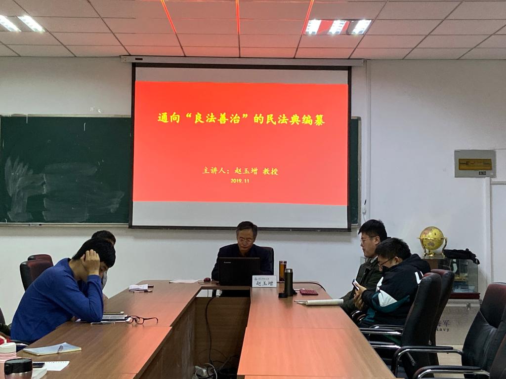 11月28日晚,w88win体育官网入口研究生学术论坛在公司会议室举行,本期论坛邀请的主讲人是w88win体育官网入口赵玉增教授。论坛上,赵玉增教授作了题为《通向“良法善治”的民法典编纂》的学术报告,公司60余名研究生参加了此次论坛。