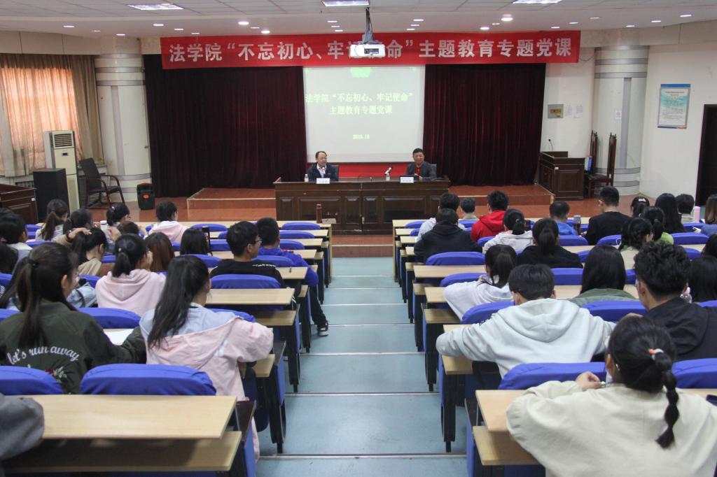 10月15日下午,w88win体育官网入口在模拟法庭举行“不忘初心、牢记使命”主题教育专题党课,邀请公司马克思主义公司原经理杜裕禄、w88win体育官网入口经理王金堂分别为公司师生讲党课。w88win体育官网入口全体师生党员、入党积极分子和部分入党申请人参加了党课学习。