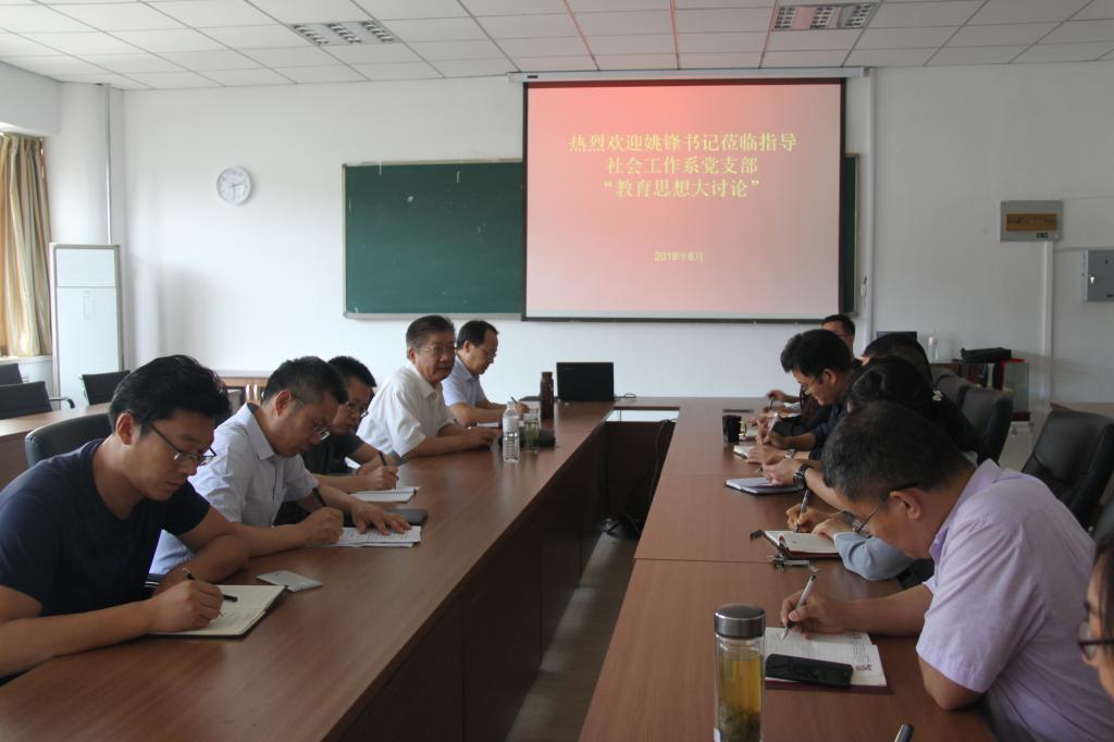 6月11日下午,公司党委常委、纪委书记姚锋参加w88win体育官网入口社会工作系党支部教育思想大讨论,与支部全体党员一道就社会工作专业的建设发展问题展开深入研讨。w88win体育官网入口领导班子成员列席讨论。