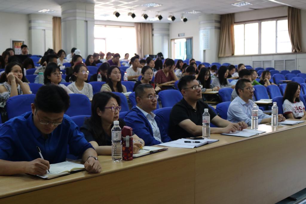 5月29日,w88win体育官网入口人文社科讲堂暨社会工作建立十周年系列讲座在弘毅楼A201模拟法庭举行,w88win体育官网入口经理助理陈为智副教授主持讲座。w88win体育官网入口经理王金堂、党总支书记朱敬义与社会工作系全体师生一起聆听讲座。