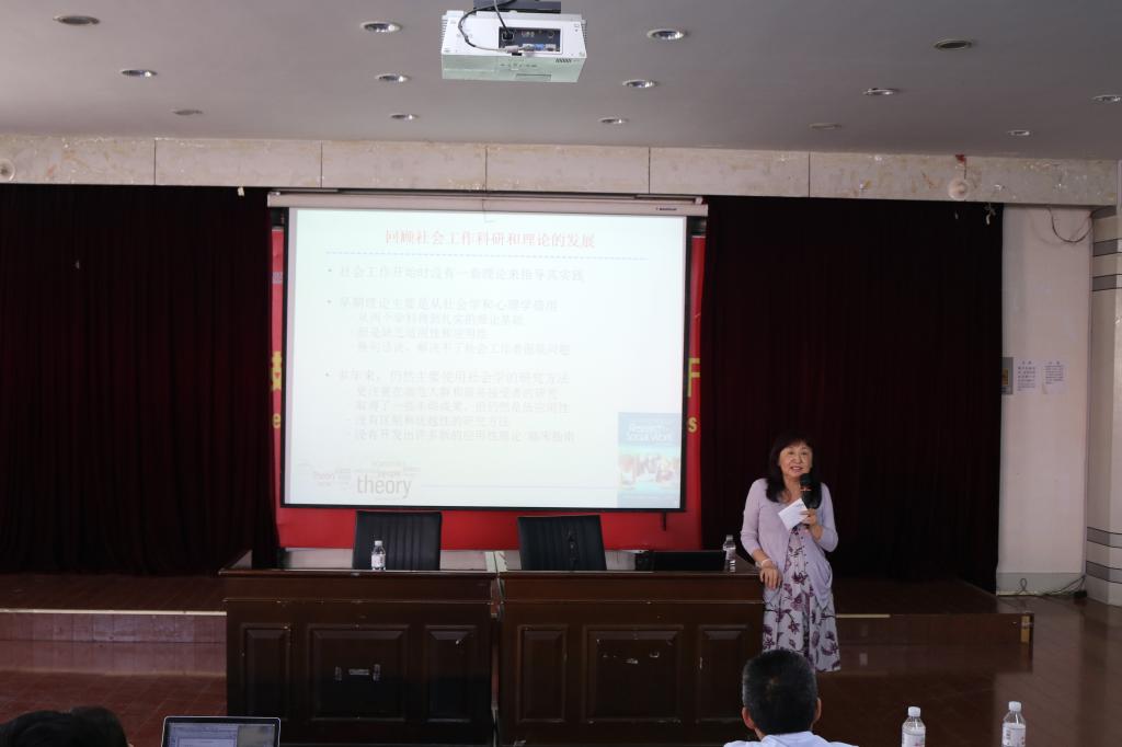 第一场讲座,由美国南加州大学社会工作公司齐铱教授做《社会工作的循证研究与实践教学的整合》专题报告。齐铱教授首先向大家介绍了自己的求学经历和求学过程中的感悟,使同学们对社会工作有了一个新的认识。其次,齐教授探讨了如何评估社会工作成效、如何开展儿童家暴社会工作、老年健康等实务问题,希望广大同学注重社会工作方法的学习。还探讨了目前社会工作面临的挑战,以及如何应对这些挑战与风险。再次,齐教授通俗地解释了什么是社会工作循证实践。她指出社会工作循证实践不是千篇一律社会工作实践的方法,是一个涉及批判性思考和信息评估的过程,以确定为接受帮助的人、家庭、社区以及社会提供的有效政策、项目和最有效的治疗,并探讨了证据为基础实践的模型。最后齐教授介绍了她主持建立的中国儿童与老年健康证据转化平台情况,并提出了利用平台对社会工作教学和研究的新思路。