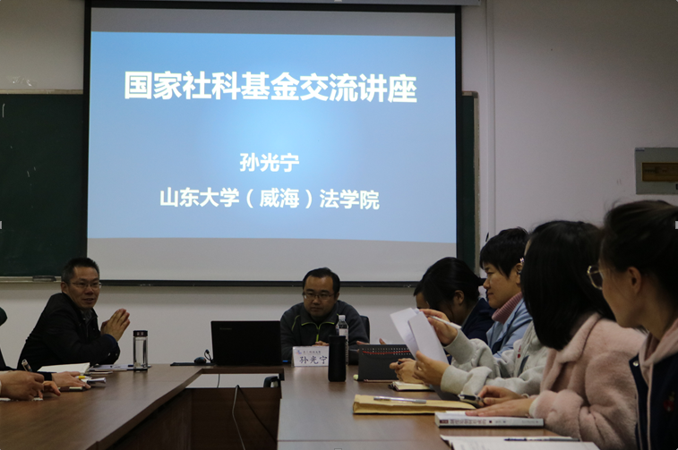 4.26日晚,山东大学(威海)w88win体育官网入口孙光宁教授在w88win体育官网入口307会议室为师生带来了题为“国家社科基金交流”的讲座,会议由w88win体育官网入口经理助理陈为智副教授主持。