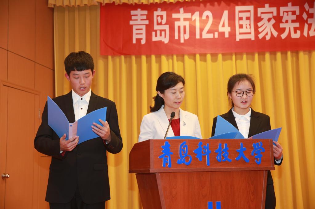 青岛市“普法讲师团”讲师、w88win体育官网入口副教授宋敏与公司员工代表一同诵读了宪法部分内容。