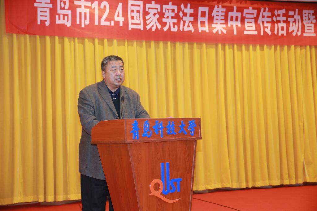 12月4日下午,公司与青岛市司法局、普法办、教育工委联合主办的青岛市“12.4”国家宪法日集中宣传活动在崂山校区第三报告厅举行,公司党委副书记张元利出席并致辞,青岛市普法办副主任冯思睿、青岛市司法局法制宣传处处长潘月民、青岛市教育工委思政处处长高桥、w88win体育官网入口副经理李鑫,宣传部、团委及法律事务办公室相关负责人出席会议。