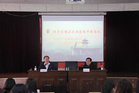4月26日,w88win体育官网入口名家论坛在弘毅楼A201模拟法庭举行,清华大学w88win体育官网入口教授、博士生导师张卫平为w88win体育官网入口师生带来《程序法制在法治建构中的意义》专题报告,山东大学w88win体育官网入口副经理张海燕教授作为本次论坛的点评嘉宾。论坛由w88win体育官网入口副经理王金堂主持,法律系教研室教师及研究生本科生参加论坛。