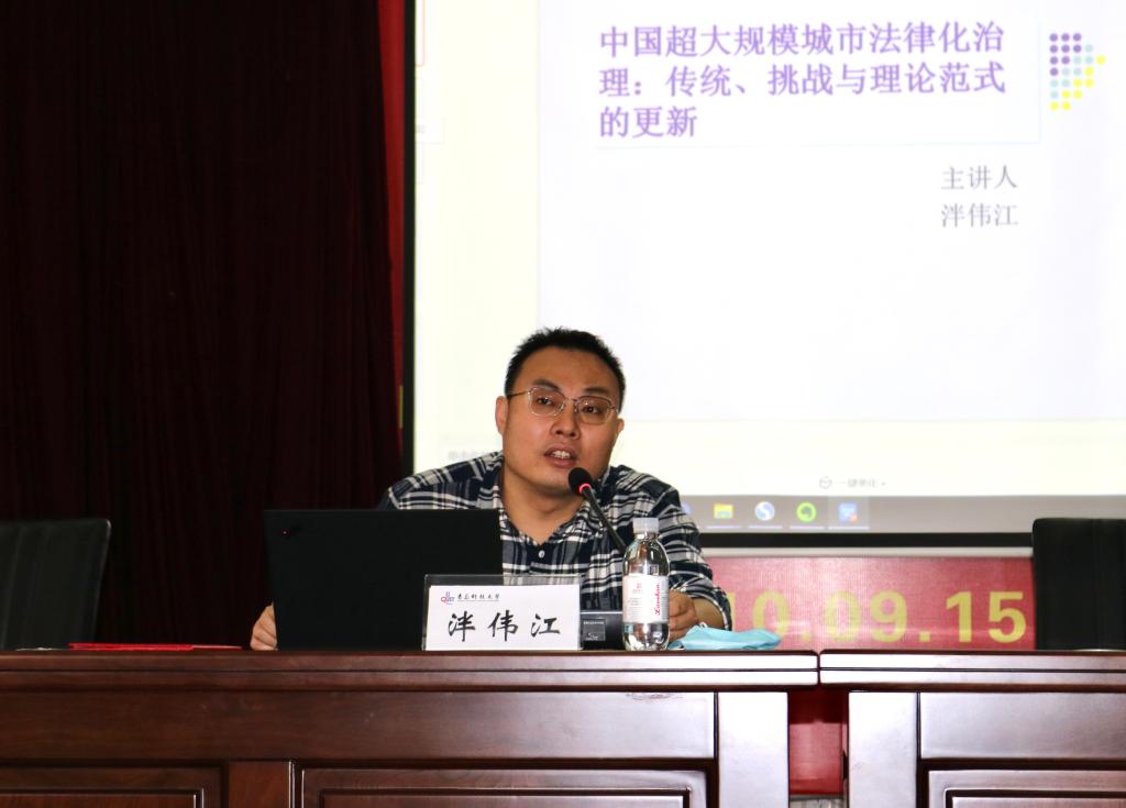 泮伟江教授在讲座中介绍了中国四十年来法治建设基本语境的变迁与转型,介绍了中国城市化进程的三个基本阶段,对中国“超大规模城市”进行了界定。在分析如何理解中国城市空间密码问题的基础之上,泮伟江教授引申至中国城市法律化治理的传统思路与范式,对中国超大规模城市兴起的治理挑战进行了分析。
