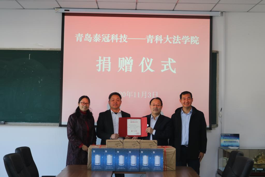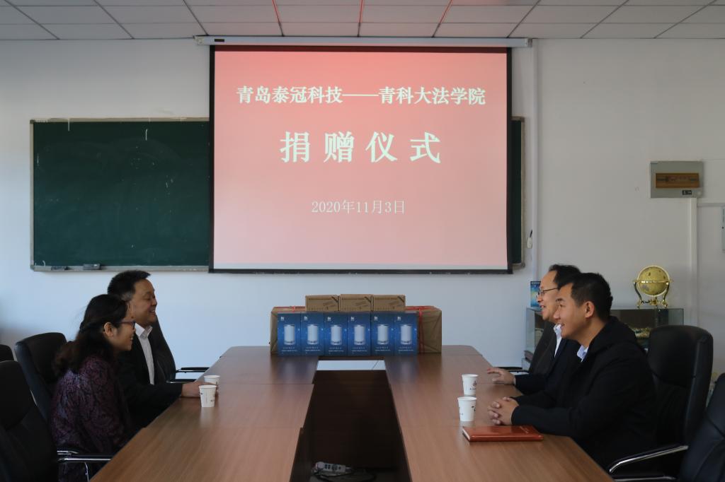 11月3日上午,青岛泰冠科技有限公司总经理路积胜来到w88win体育官网入口,捐赠了护眼台灯、太阳能手电筒等学习用品,经理王金堂、党总支书记李卉、党总支副书记兼副经理刘俊杰出席。