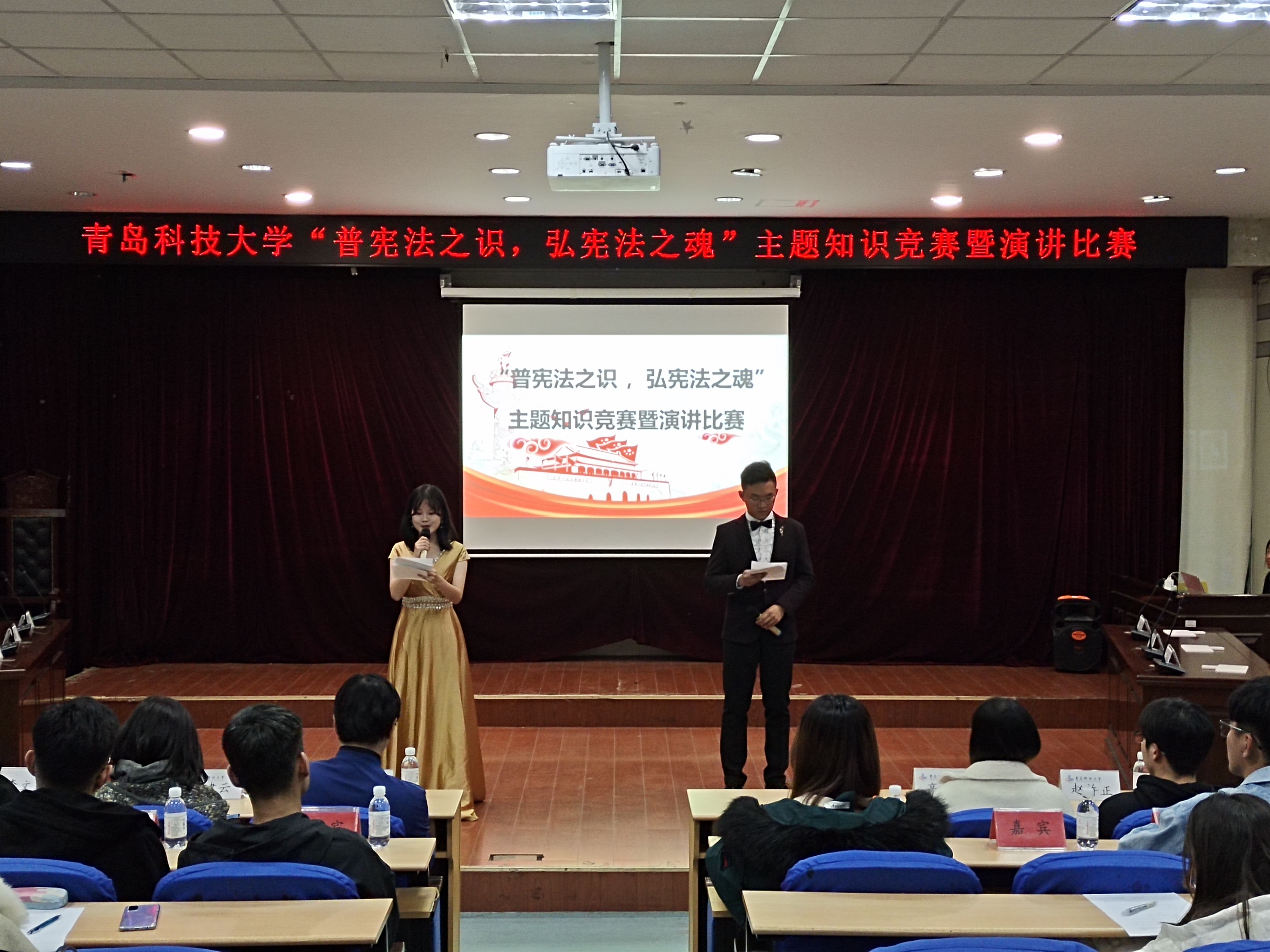 为深入学习领会习近平新时代中国特色社会主义思想,落实中央关于深入学习宣传和贯彻实施宪法的有关精神,广泛开展宪法宣传教育,选拔优秀选手代表公司参加第五届全省“学宪法讲宪法”主题演讲比赛,11月11日晚上,由公司党委宣传部主办、w88win体育官网入口承办的首届“学宪法讲宪法”主题演讲比赛暨知识竞赛在崂山校区模拟法庭举行。w88win体育官网入口教师代表、校员工会、演讲口才协会相关负责人应邀担任评委。