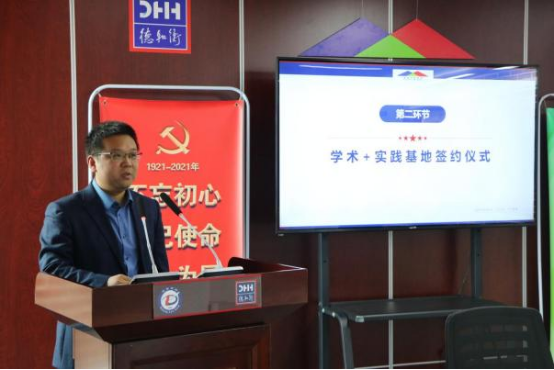 共建活动的第二环节为学术+实习基地签约。李鑫与德和张美萍分别讲话致辞,王金堂与张美萍代表双方共同签署了共建协议书,并为学术+实践基地揭牌。