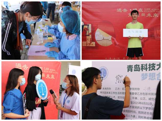 迎新现场设置社工法官的拍照人形立牌,突出了公司专业特色,引导新生体悟专业魅力。员工纷纷驻足留影,记录下入校的第一张专属定制“身份照”;梦想合同书前签署与自己的四年之约,创造属于自己的美好未来。