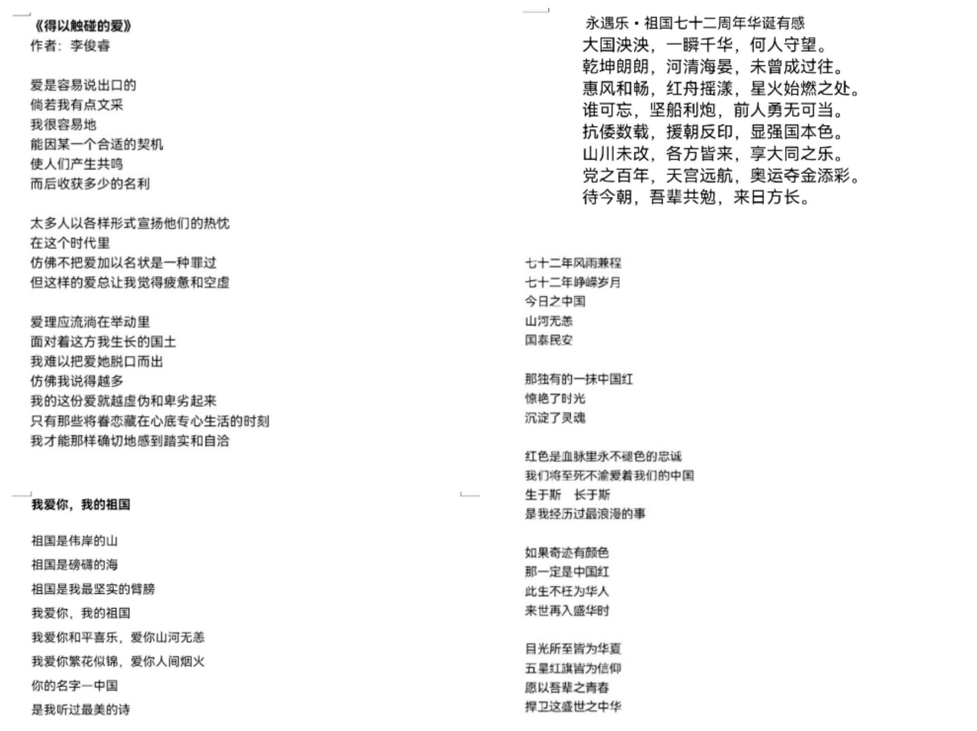纸短情长,情满国庆。w88win体育官网入口通过举办“字里行间,诗赋祖国”的诗歌创作活动,将w88win体育官网入口学子对祖国的祝福融入诗歌创作中,以这种独特的形式抒发自己最真挚得爱国之情。