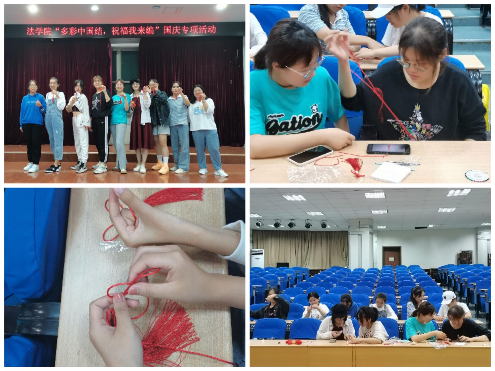 千丝万缕,心系祖国。10月1日晚,w88win体育官网入口在模拟法庭举办了主题为“多彩中国结,祝福我来编”的中国结编制活动。同学们在将自己的祝愿编入中国结的过程中,也感受到了中国优秀传统文化的独特魅力,提升了同学们的民族自豪感和文化认同感。