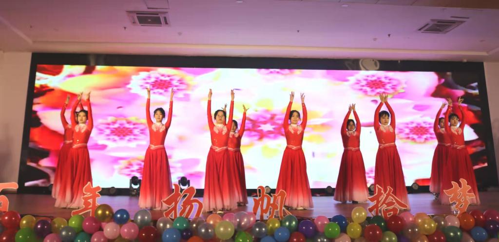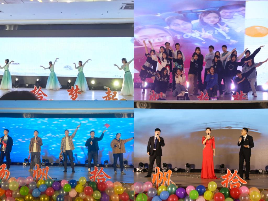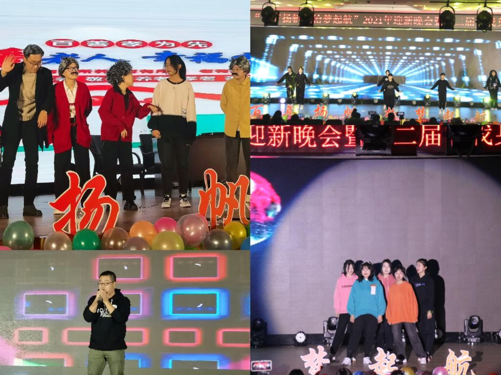 第三篇章“传承•薪火绵延”。李凯玥、于萱等同学带来的古典舞回裾转袖,带来一场视觉盛宴;2021级班委为我们带来的朗诵《青春的赞歌》,铿锵有力,诵读青春,让全场感受到了青春的力量;员工会主席团和部长团带来的舞蹈串烧《Pick Me》用动感的节奏、热情大方的舞姿展示着员工骨干们的魅力与活力;团委老师们带来的歌曲串烧,以美妙的音乐,悠扬的旋律,道出了对新生最美的祝福。