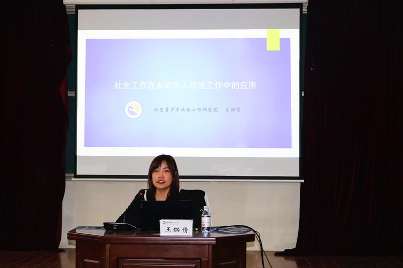 3月29日下午,北京超越青少年社工事务所副主任王璐倩受邀在模拟法庭为w88win体育官网入口师生讲授了主题为“社会工作在未成年人司法工作中的应用”的学术报告。讲座由w88win体育官网入口王琪老师主持,w88win体育官网入口师生聆听了此次讲座。