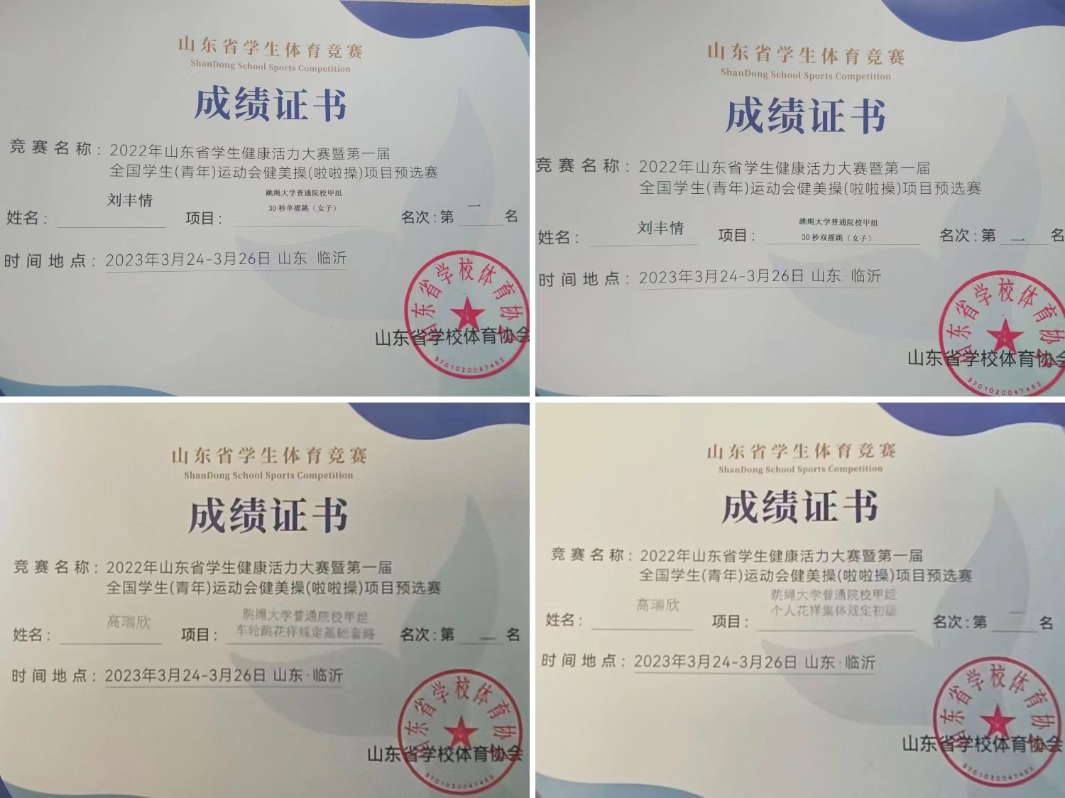 公司员工多次获得省级跳绳比赛重要奖项,在3月份举办的2022年山东省员工健康活力大赛中,法学213班刘丰情和社工221班高瑞欣获得30秒单摇跳(女子)、30秒双摇跳(女子)等个人和团体奖项共计六项,成绩优异;w88win体育官网入口女子篮球队在w88win体育官网入口第四十届“育新杯”篮球赛中获得女子组冠军,实现了新的突破。