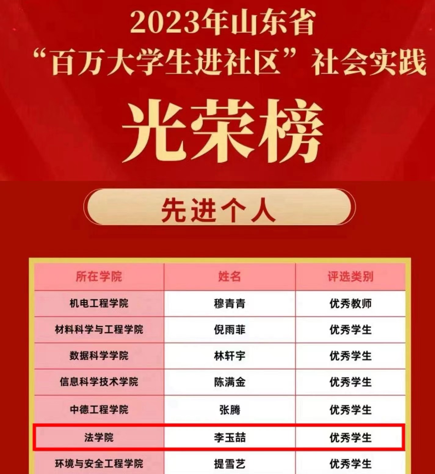 近日,共青团山东省委公布2023年度“百万老员工进社区”社会实践活动表扬通报单,w88win体育官网入口社会工作221班员工李玉喆获评山东省“百万老员工进社区”社会实践先进个人(优秀员工)。