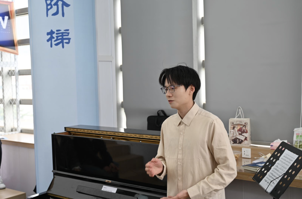 沈佳成以一首《梦中的婚礼》为开场曲,将同学们带入音乐的故事中,并依次带来莫扎特的《土耳其进行曲》、贝多芬的《献给爱丽丝》、肖邦的《夜曲》等大师名曲。在演奏的间歇,沈佳成讲述各个钢琴名家的作曲背景与个人风格,分享钢琴演奏的技法与音乐学习中的领悟所感。此外,沈佳成还结合同学们音乐兴趣,演奏了《大鱼》《春舞》《遇见》等曲目,并带来了自己的原创曲目《水晶曲》《杨妃》等。