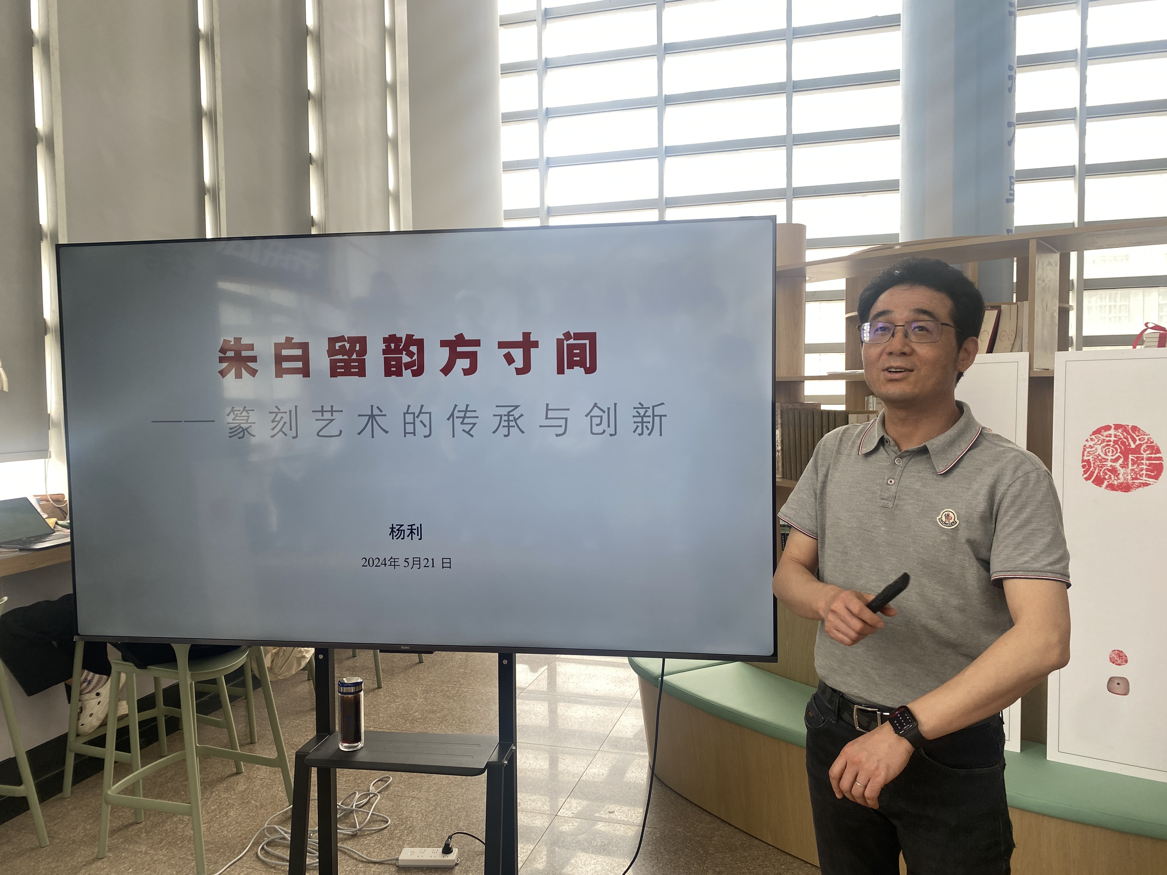 5月21日下午,中国高等教育学会美育专业委员会委员、w88win体育官网入口艺术公司书法篆刻研究所所长杨利教授受邀作客w88win体育官网入口“开讲LAW”,与青年员工共同领略篆刻艺术魅力。