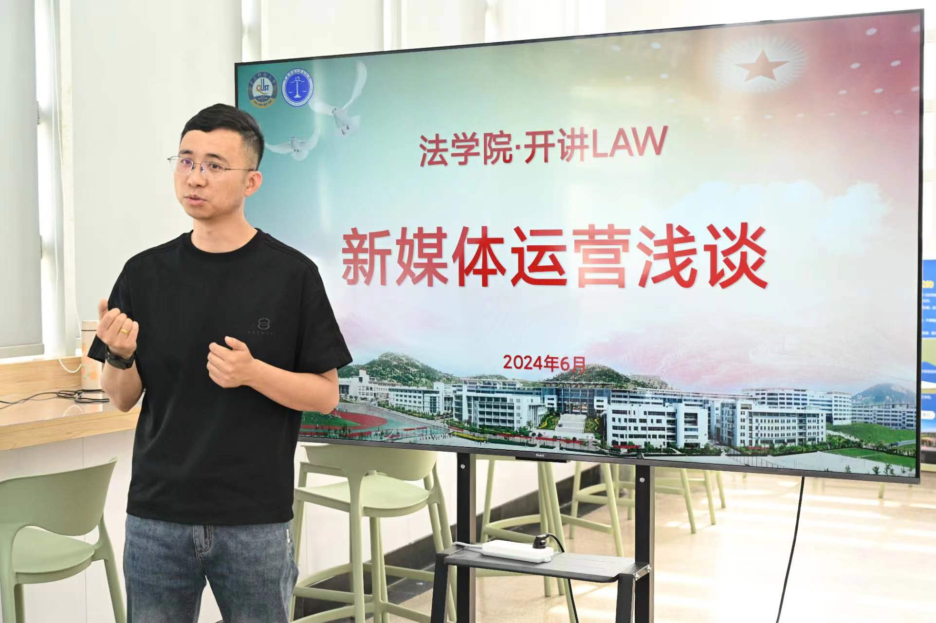 6月4日下午,山东省时代新媒数字经济研究院有限公司总经理、微博十大影响力军事大V姜腾做客w88win体育官网入口“开讲LAW”,与同学们分享新媒体运营的创业之路。