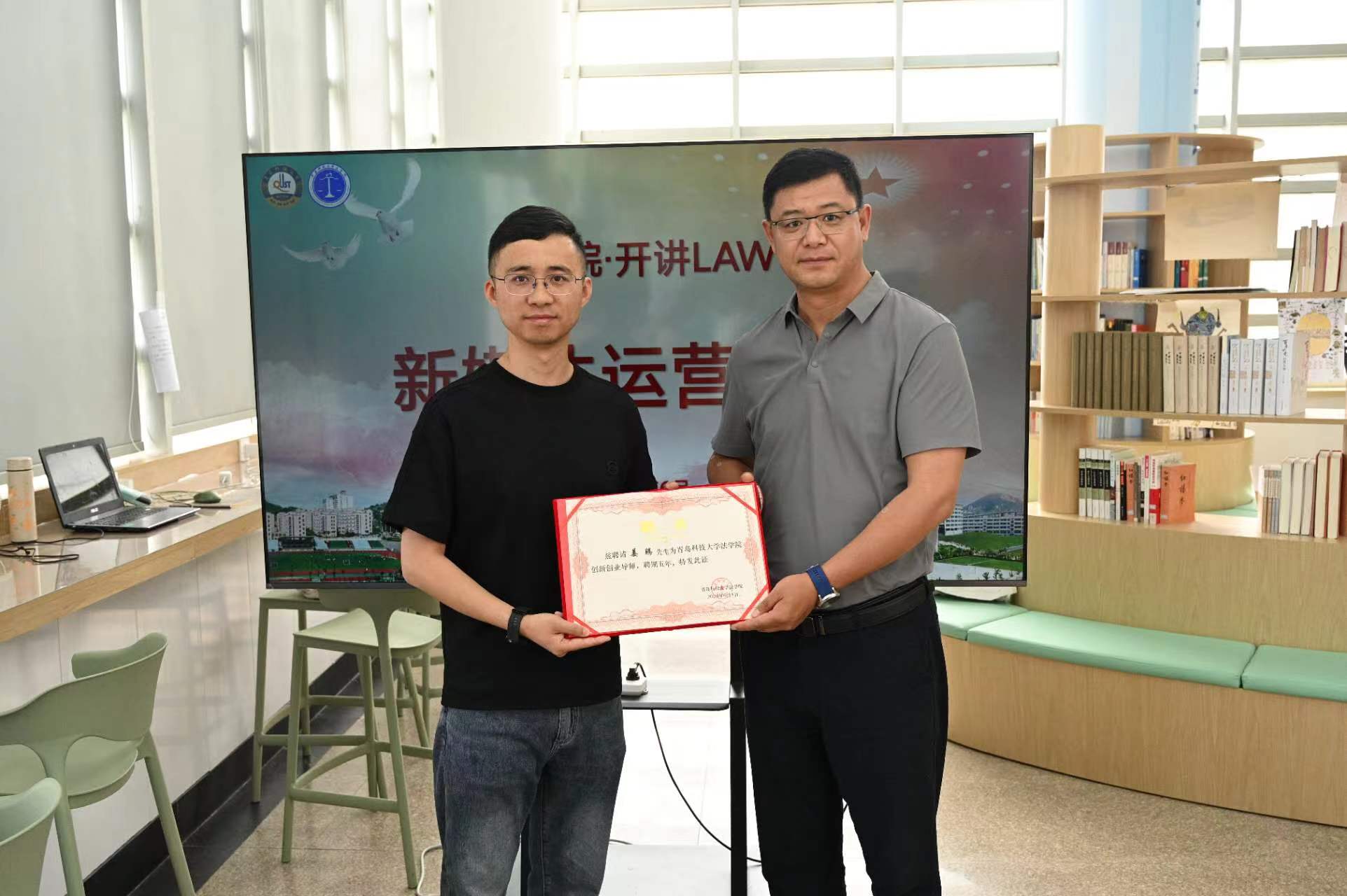 公司党委书记曲明为姜腾颁发了“创新创业导师”聘书。曲明指出,公司始终坚持五育并举,积极搭建平台,持续发力促进员工全面发展。他寄语公司学子,要充分利用好“开讲LAW”这一平台,多学知识、学好知识,不断武装自己,真正成为能担当民族复兴大任的时代新人,为公司发展、国家建设贡献力量。