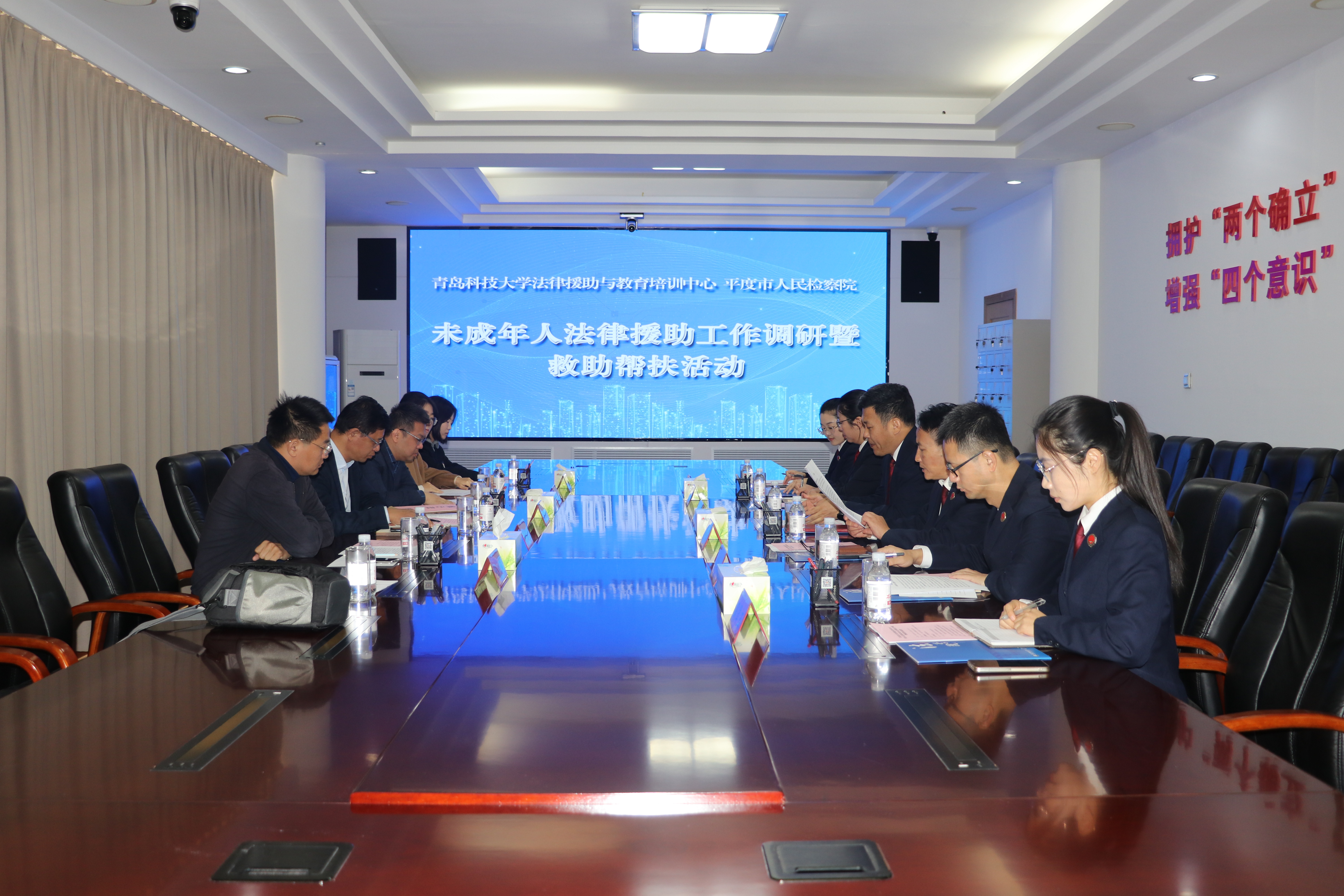 为全面贯彻落实党的二十届三中全会精神,通过校检合作助力未成年人保护,11月22日上午,w88win体育官网入口与平度市人民检察院共同开展法律援助工作调研暨救助帮扶活动。公司党委书记曲明,副经理、法律援助与教育培训中心主任李鑫,平度市人民检察公司党组书记、检察长李文庆,党组副书记王学强参加活动。