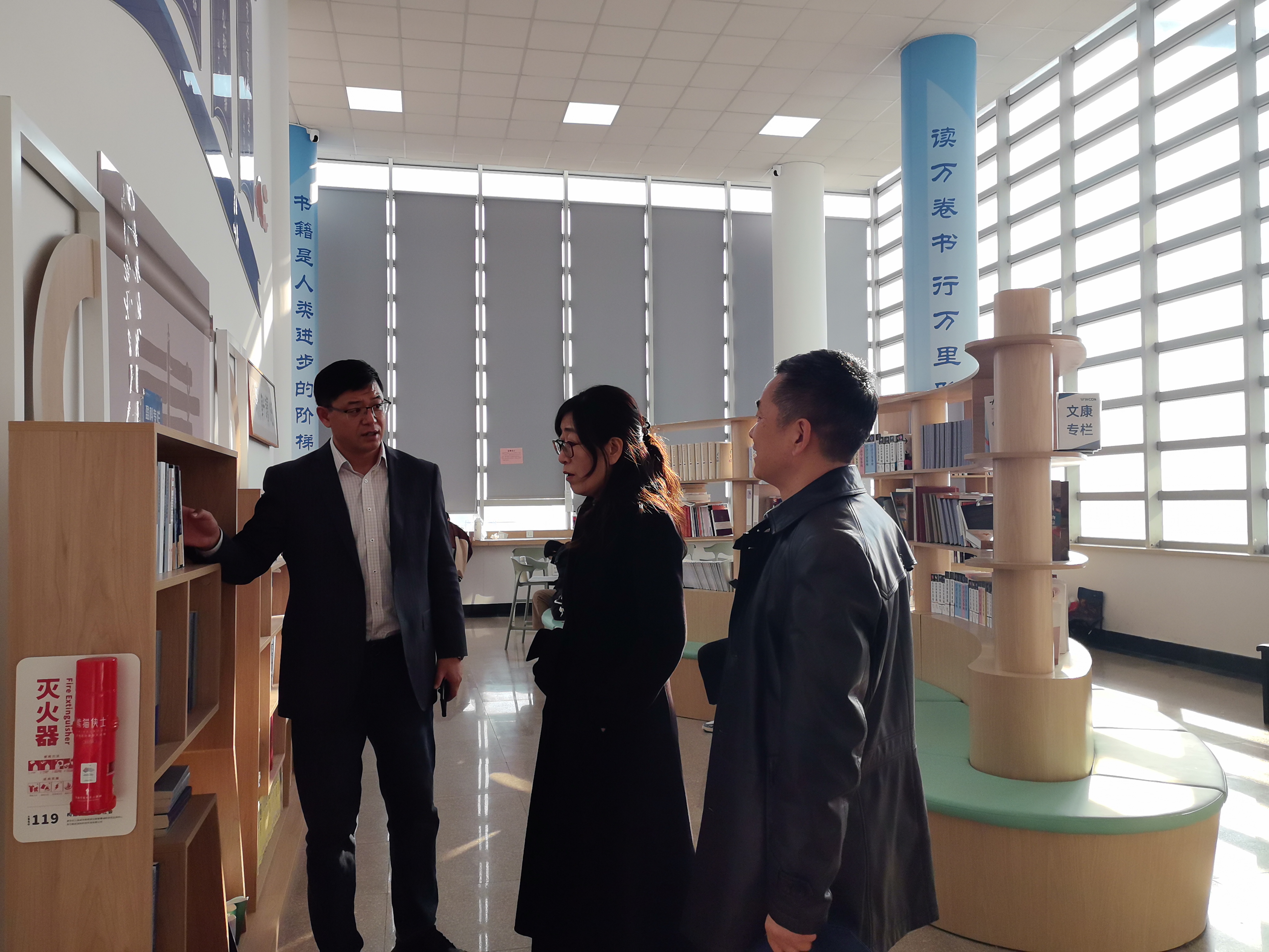 会前,李萍实地调研了w88win体育官网入口教学与科研、悦读轩、文化墙等。