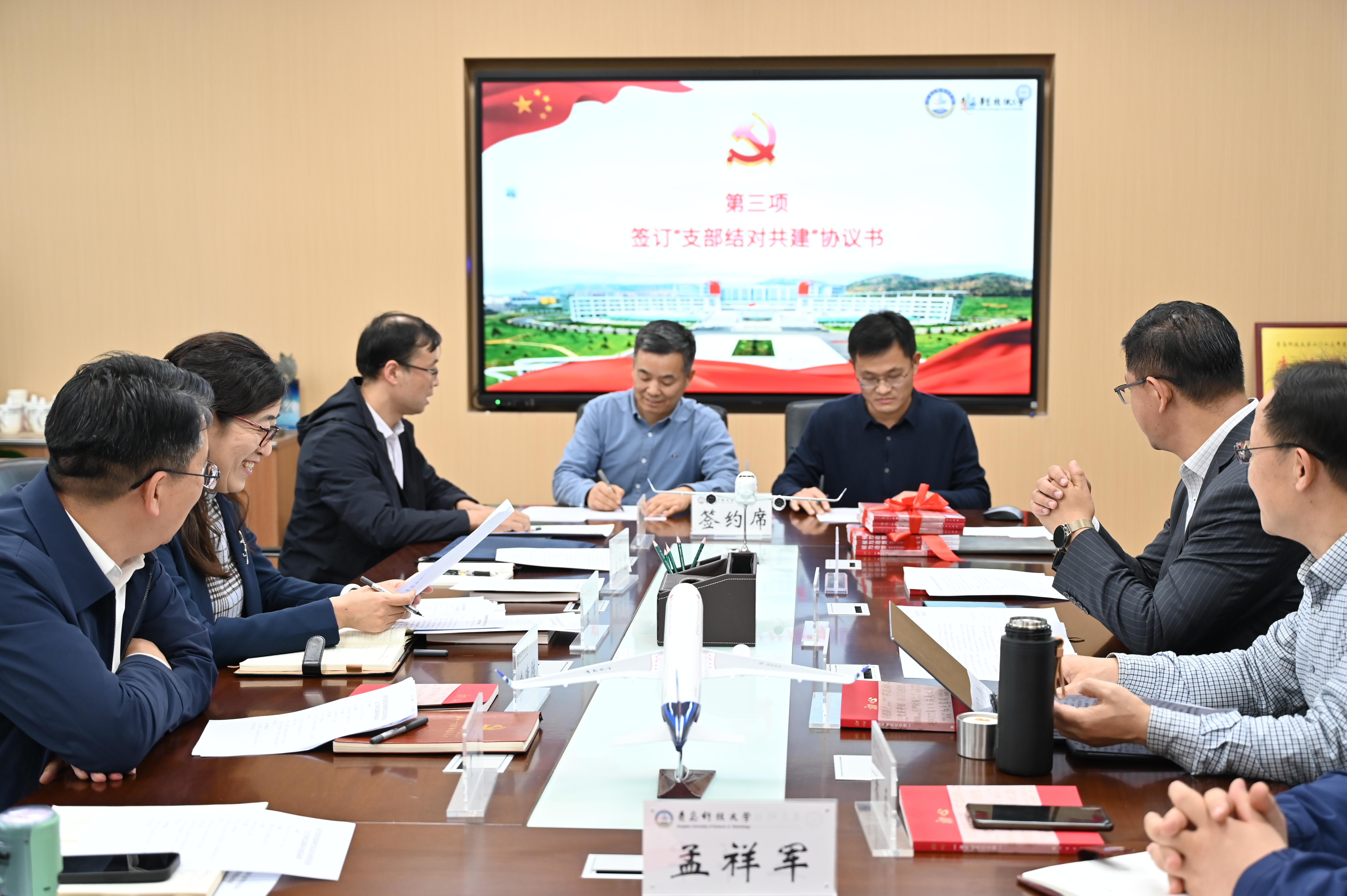 共建支部进行了签约仪式,并互赠学习书籍。与会人员共同观看了“全国党建工作样板支部”宣传视频。
