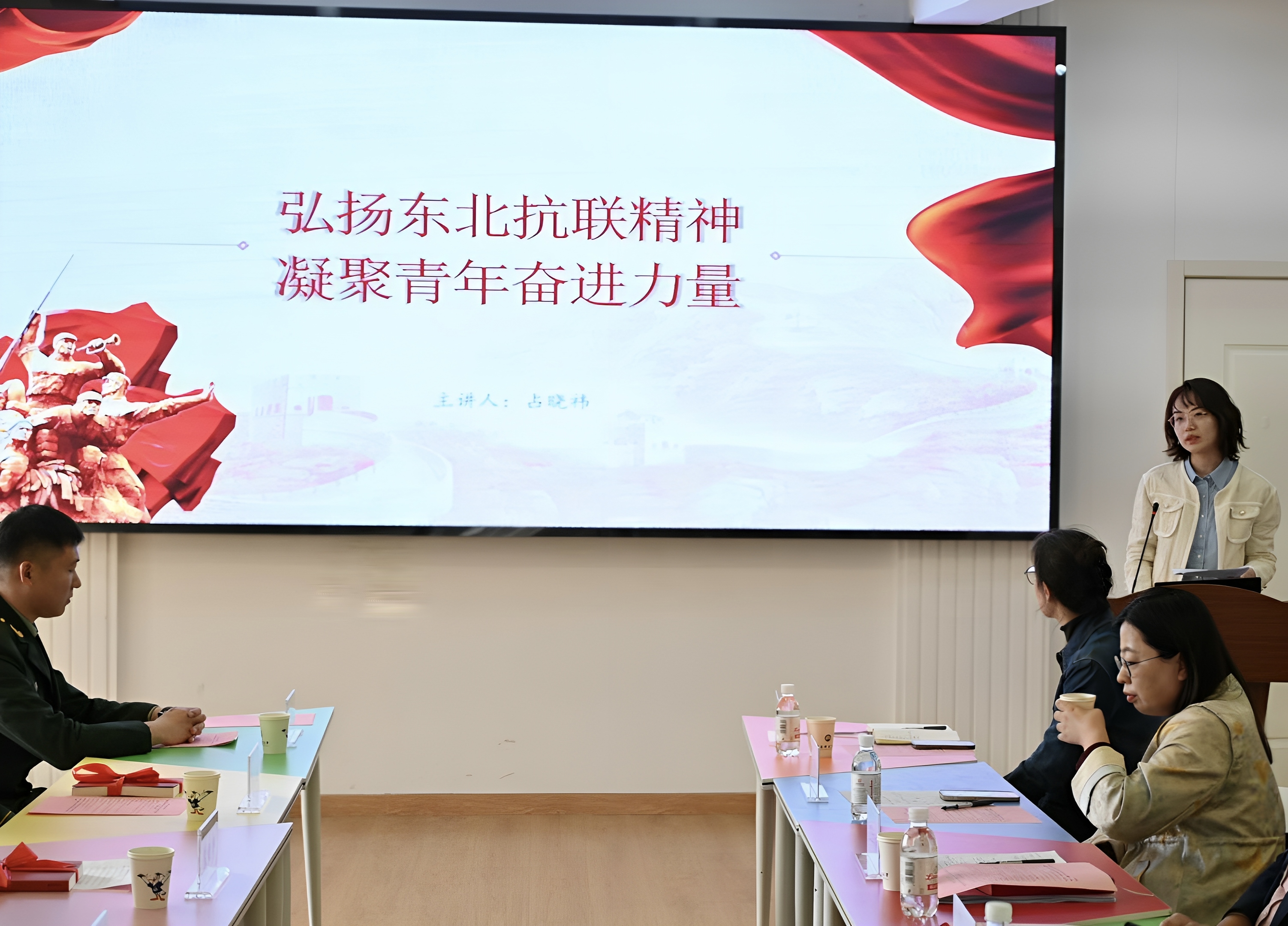 会议第二阶段,经管公司辅导员占晓祎代表“火炬手 爱我国防”教育宣讲团进行了“纪念抗日战争胜利80周年”主题宣讲,带来一场别开生面的国防教育活动。