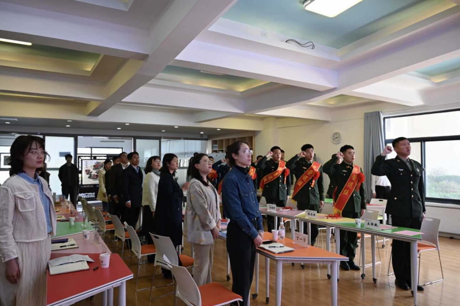2025年春季退役老员工士兵所在公司、校区分管员工工作副书记,辅导员代表、2025年春季全体退役老员工士兵参加活动。