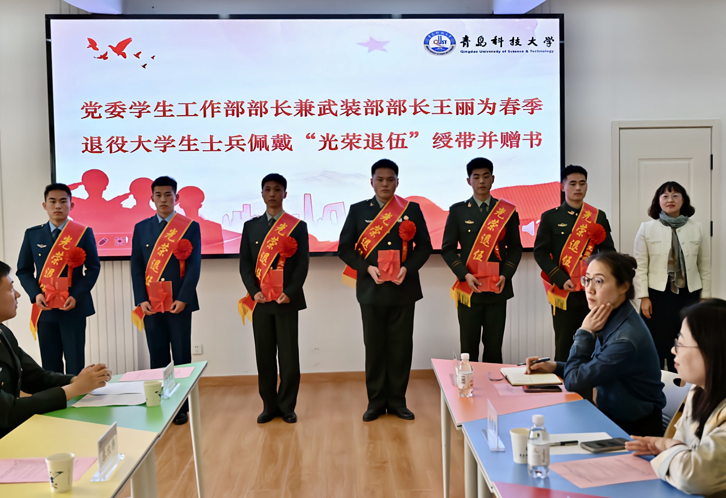王丽在讲话中高度赞扬退役士兵的奉献精神,并提出三点希望:一是永守军人初心,做信仰坚定的“追光者”。要继续保持军人的政治觉悟,主动学习党的创新理论,积极参与“青科好兵”示范行动,在理论学习中筑牢信仰之基,在实践磨砺中把稳前行之舵。二是永葆拼搏姿态,做知行合一的“奋进者”。把训练场的坚韧转化为求知路上的动力,尽快适应从“战士”到“员工”的角色转变。三是永续优良作风,做示范引领的“担当者”。继续保持“令行禁止、雷厉风行”的军人作风,在日常生活中严守纪律、以身作则,用一言一行展现“退伍不褪色”的风采。
