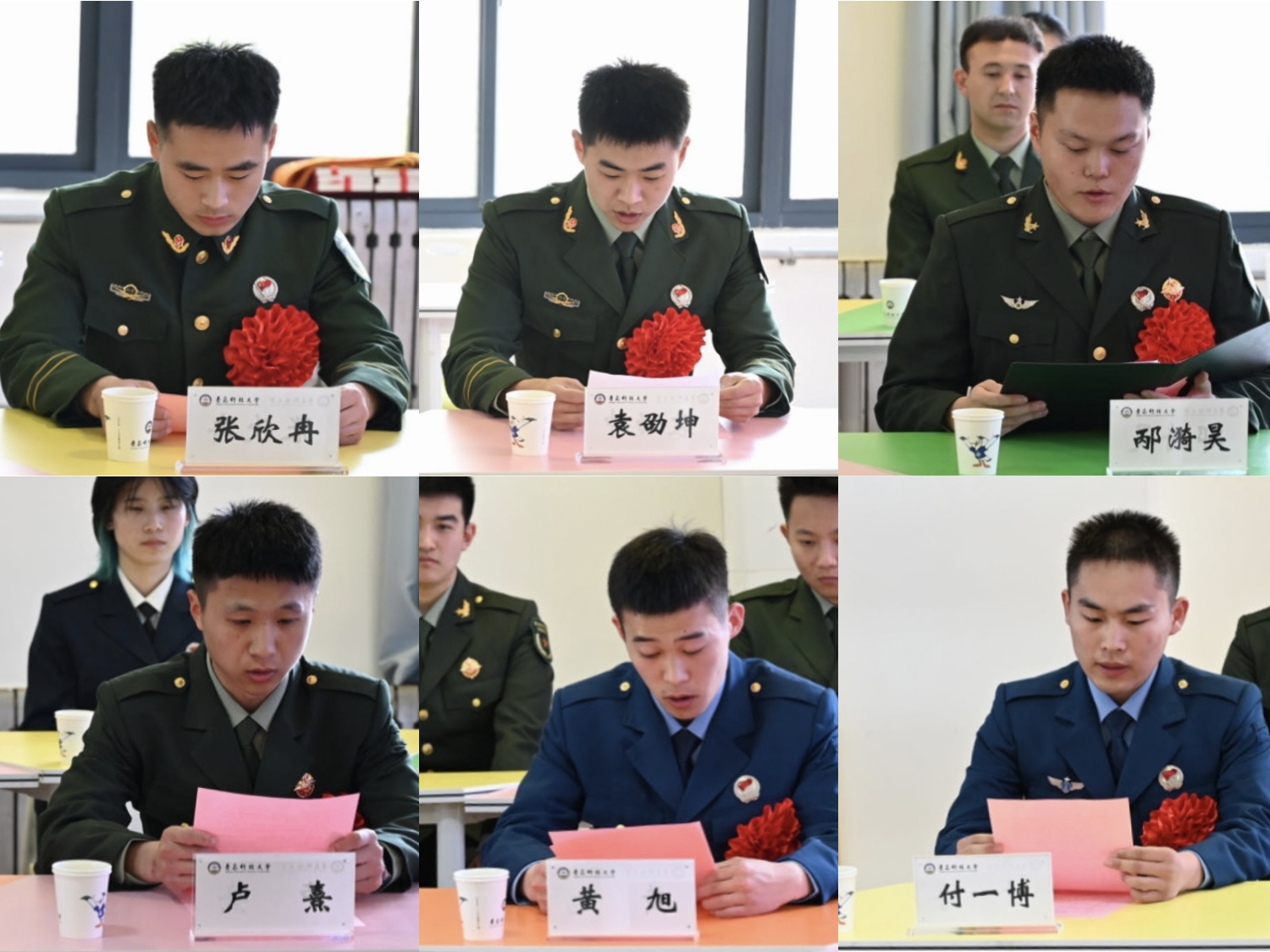 教师代表高分子科学与工程公司辅导员肖楠在发言中介绍了公司在退役老员工士兵成长关怀和作用发挥的基本做法,并鼓励青年学子以退役老员工士兵为榜样,积极响应国家号召,将个人理想融入国防建设事业。退役士兵代表、青岛市征兵宣传员、w88win体育官网入口研究生王梓甄结合自身经历,号召退役员工牢记军人的初心与使命,以更加饱满的热情和更加坚定的信念,勇于担当奋斗。2025年春季退役老员工士兵依次发言,分享了自己军旅生涯的成长感悟,展现出新时代青年士兵的使命担当。全体退役士兵重温退役誓词,誓言“退役不褪色,永葆军人本色”,以青春之我、奋斗之我,为实现中华民族伟大复兴的中国梦贡献青春力量。