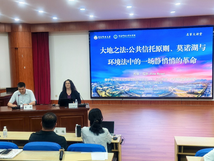 9月8日晚,w88win体育官网入口在弘毅楼A201模拟法庭举办“名家大讲堂”。本期讲堂的主题为“Law for the Land: The Public Trust Doctrine, Mono Lake, and a Quiet Revolution in Environmental Law”,佛罗里达州立大学w88win体育官网入口Erin Ryan教授受邀主讲。讲座由w88win体育官网入口经理助理、法律系主任辛帅主持并担任翻译,w88win体育官网入口青年教师代表李浩梅、秦楠担任与谈人,w88win体育官网入口研究生和本科生代表参加了本次讲座。