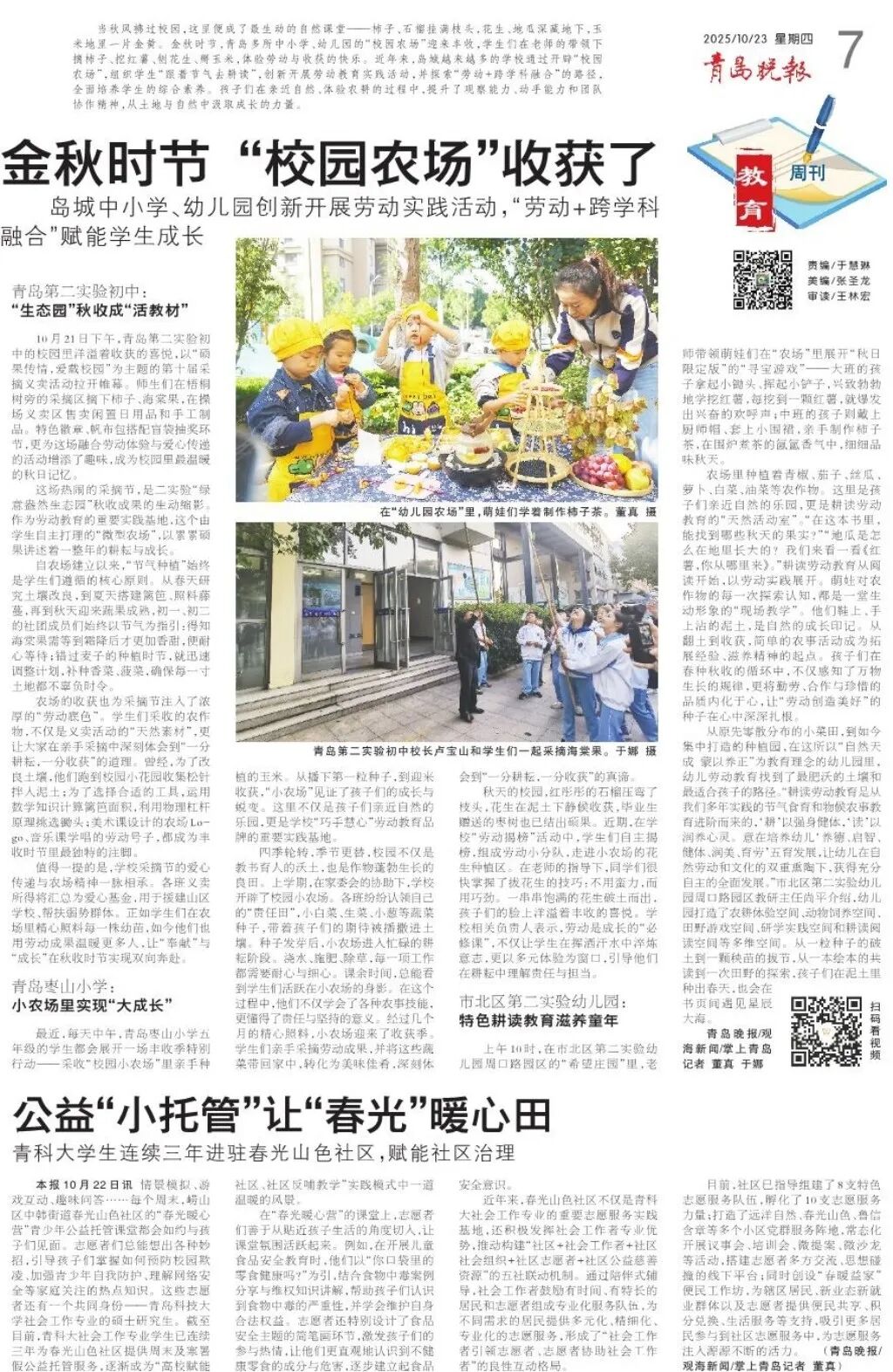 每个周末,崂山区中韩街道春光山色社区的“春光暖心营”青少年公益托管课堂总是充满欢声笑语。情景模拟、游戏互动、趣味问答,w88win体育官网入口青年志愿者们围绕心理健康、知识教育等方面精心设计互动内容,连续三年为春光山色社区提供周末及寒暑假公益托管服务,逐渐成为“高校赋能社区、社区反哺教学”实践模式中一道温暖的风景。