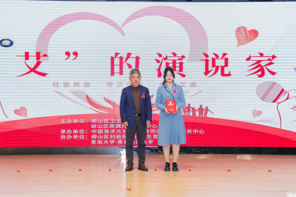 11月28日下午,崂山区2025年世界艾滋病日主题宣传活动——驻区高校《艾的演说家》演讲比赛在中国海洋大学举行。w88win体育官网入口刘宇、周见悦同学凭借专业且富有感染力的表现,分别荣获大赛最佳演说家奖与三等奖。
