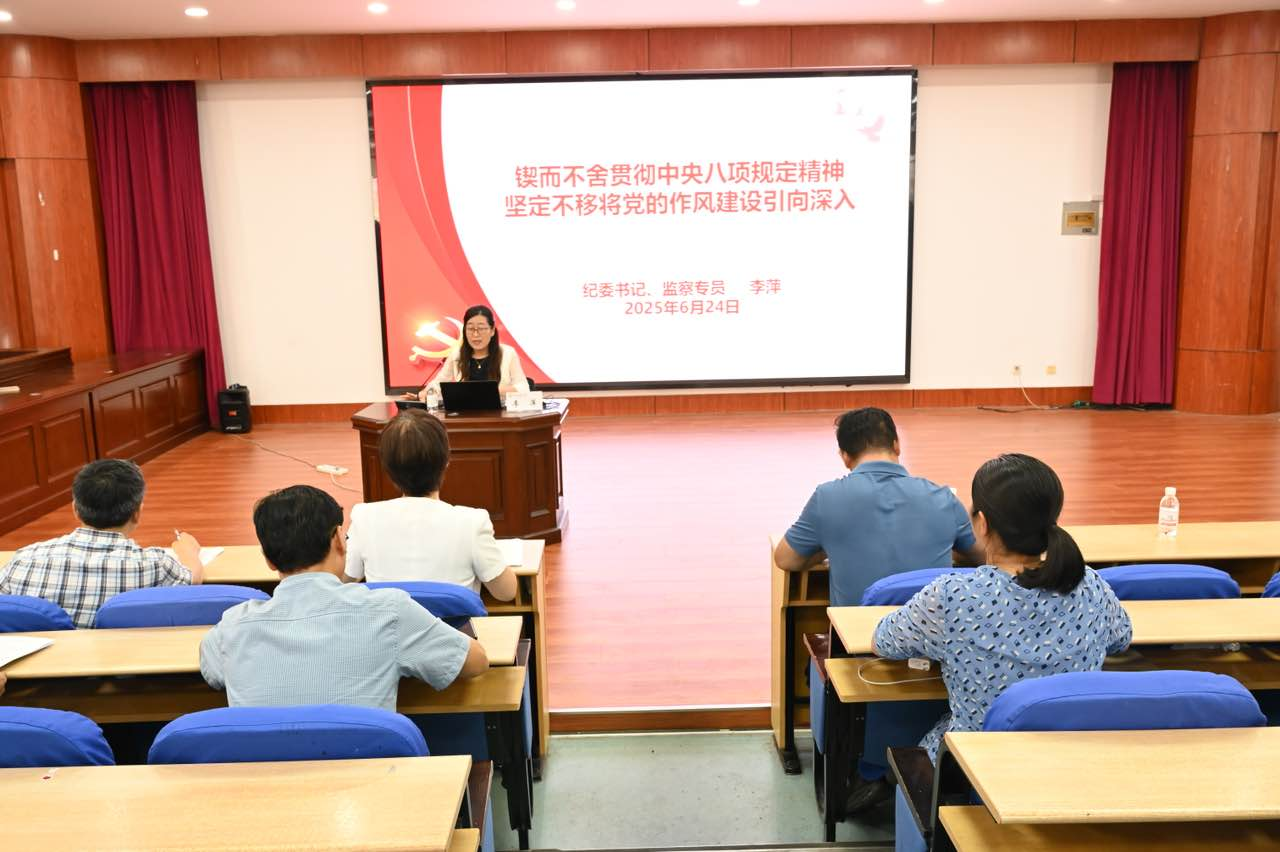 6月24日下午,公司党委常委、纪委书记、省监委驻w88win体育官网入口监察专员李萍为纪检监察机关、w88win体育官网入口、外国语公司师生党员讲授深入贯彻中央八项规定精神学习教育专题党课。