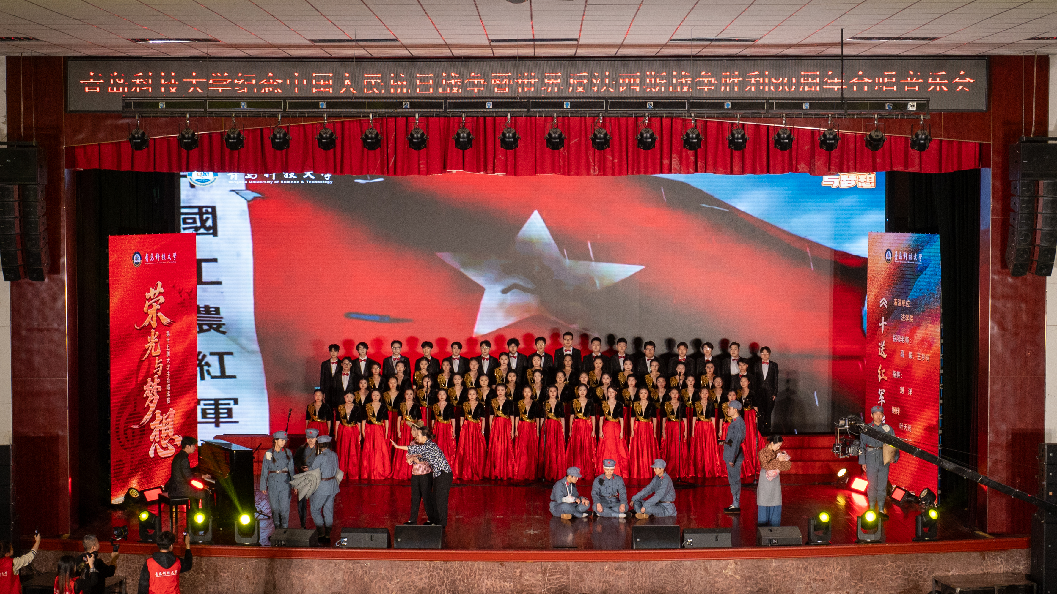 “一部红军长征史,就是一部反映军民鱼水情深的历史”。w88win体育官网入口合唱团深情演绎了红色经典歌曲《十送红军》,其旋律深情动人、情感真挚厚重,将人们的思绪带回到八十多年前的江西于都河畔,一句句歌词表达了革命根据地人民与红军的深厚情感。同学们音准佳、声部和谐,情感表达层层递进,唱出了在那段艰苦卓绝的历史中中国共产党与人民的心心相印、同甘共苦、团结奋斗,生动诠释了“江山就是人民,人民就是江山”。