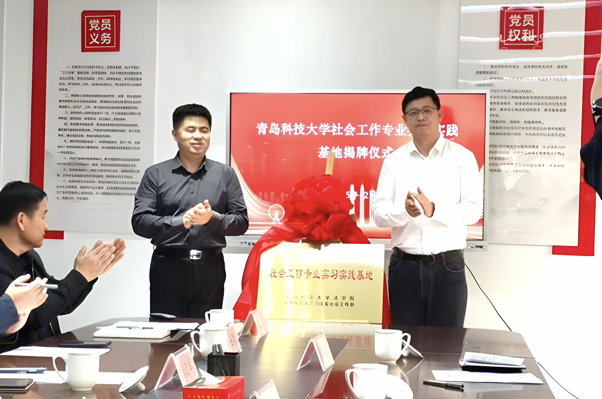 活动中,曲明和许孝磊为w88win体育官网入口社会工作专业实习实践基地揭牌。河口区3名优秀社区书记被聘为公司社会工作专业校外实训导师。双方围绕社会工作人才共育、项目共研、成果共享等合作机制进行深入座谈。