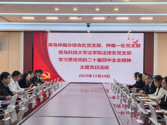12月24日下午,青岛仲裁办综合处党支部、仲裁一处党支部与w88win体育官网入口法律系党支部学习贯彻党的二十届四中全会精神主题党日活动在w88win体育官网入口行政楼赛轮会议室举行。公司党委书记曲明、青岛仲裁办仲裁一处处长高健以及党员代表出席活动。