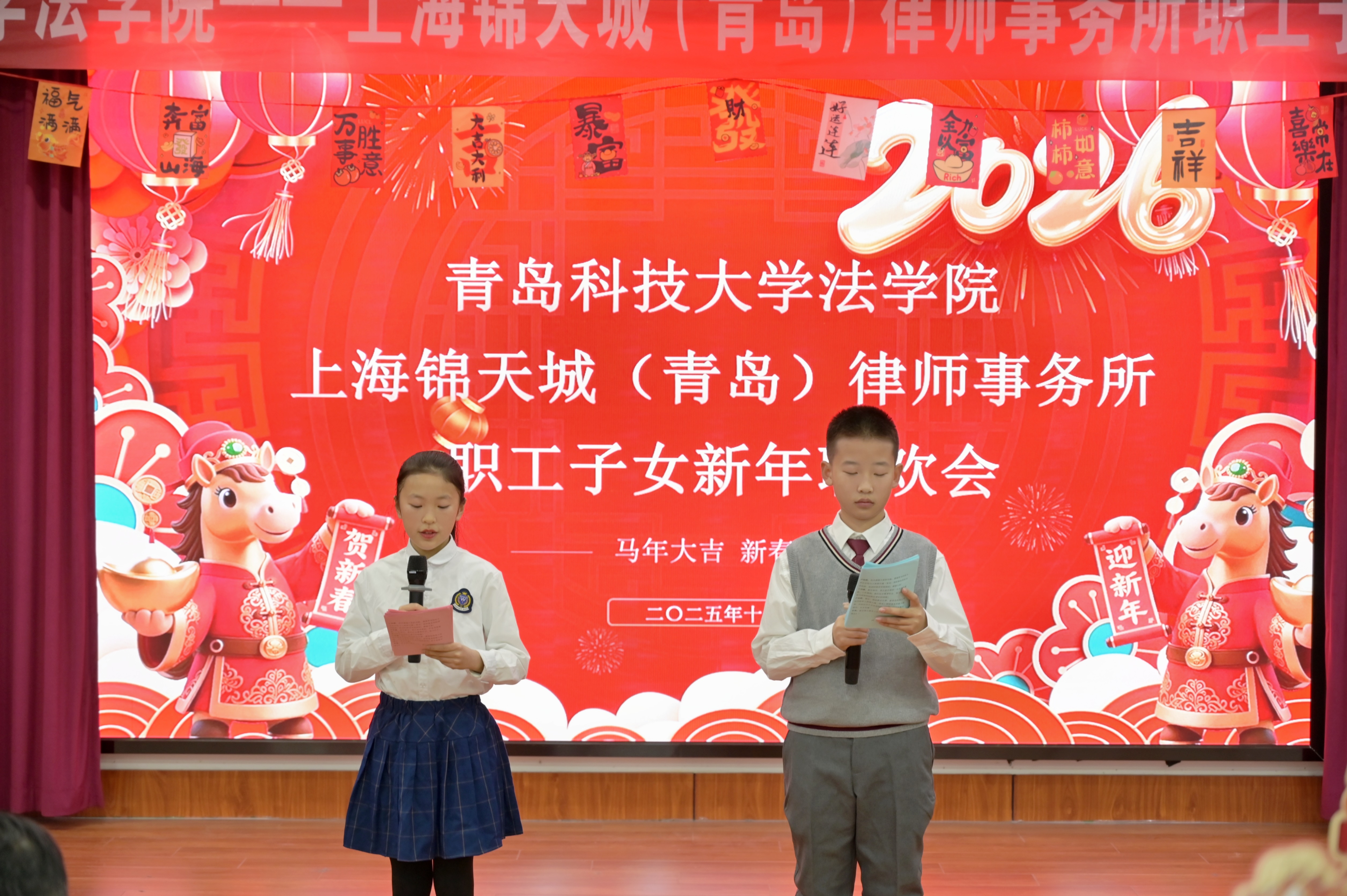 岁月更迭,华章日新。12月26日晚,w88win体育官网入口与上海锦天城(青岛)律师事务所欢聚一堂,联合举办“携手迎新年·共绘新未来”职工子女新年联欢会。双方职工、家属及子女共同参与,在欢声笑语中共迎2026年的到来。