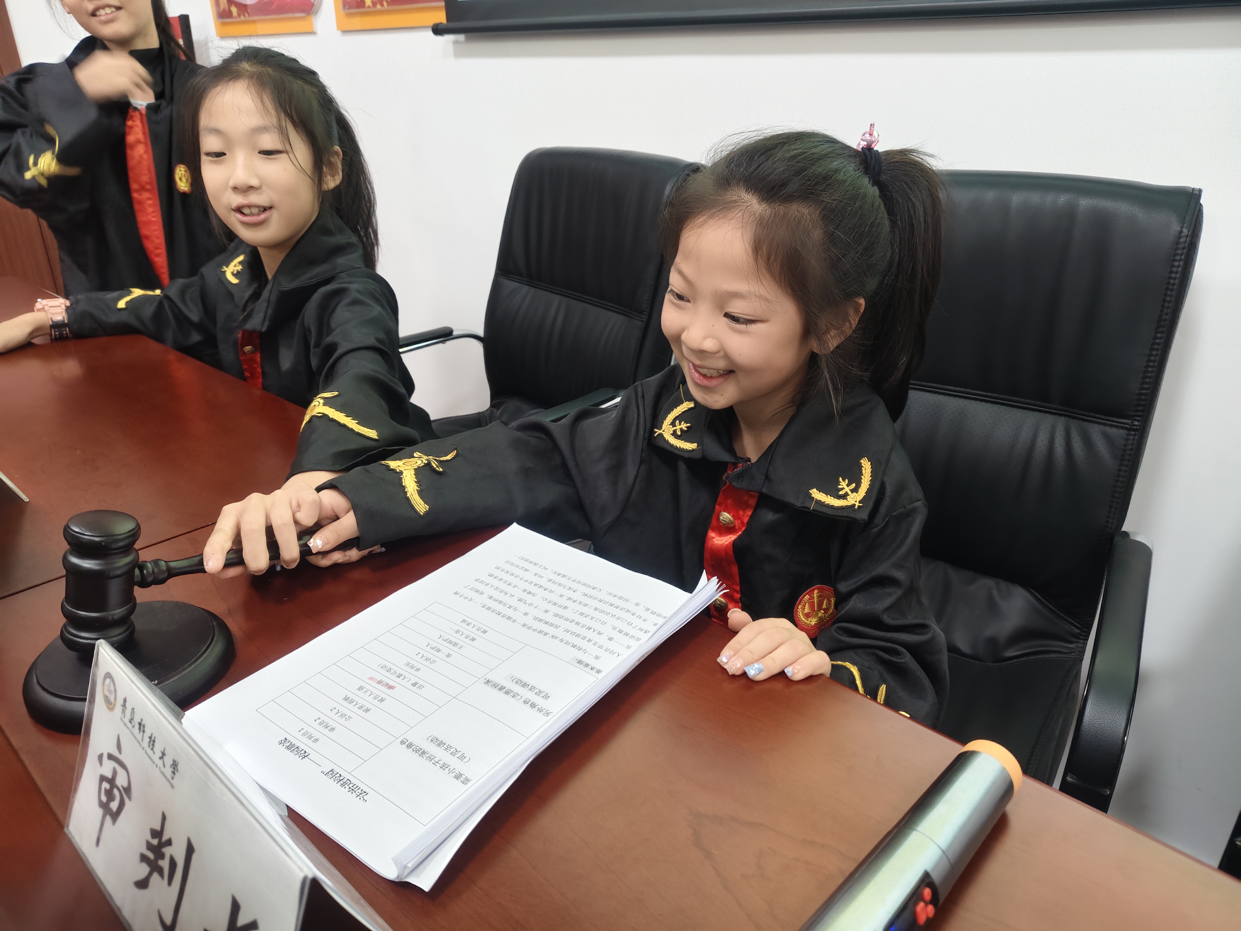 法学成员则以生动有趣的讲解互动、情景再现等形式开展普法小课堂,耐心解答孩子们提出的法律问题,在欢声笑语中播撒法治的种子,引导孩子们成为知法、懂法、守法的好少年。团队成员还把校园欺凌以及电信诈骗等真实案例改编成童趣剧本。在模拟法庭上,“小公诉人”铿锵有力地宣读起诉书,“小辩护人”据理力争,“小审判长”最终做出公正判决。通过这种沉浸式体验,孩子们得以零距离感受法庭的庄严与公正,在角色扮演中触摸正义的天平。