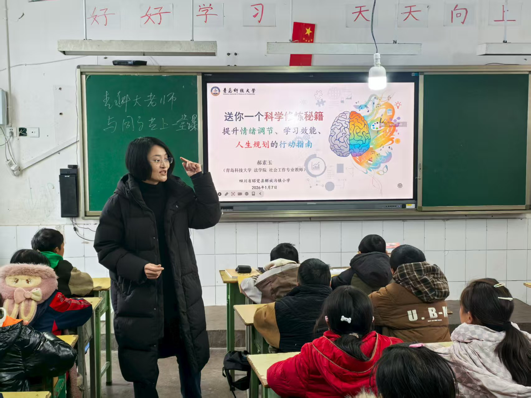 随后,曲明一行来到昭觉县解放沟镇中心小学,捐赠由山东教育集团赞助的500册精品图书,并发放由w88win体育官网入口筹备的500套御寒用品。并与员工们同上一堂课,郝素玉老师围绕小员工情绪调节、学习效能提升和人生规划等内容进行生动授课,为孩子们心中种下走出大山的种子。
