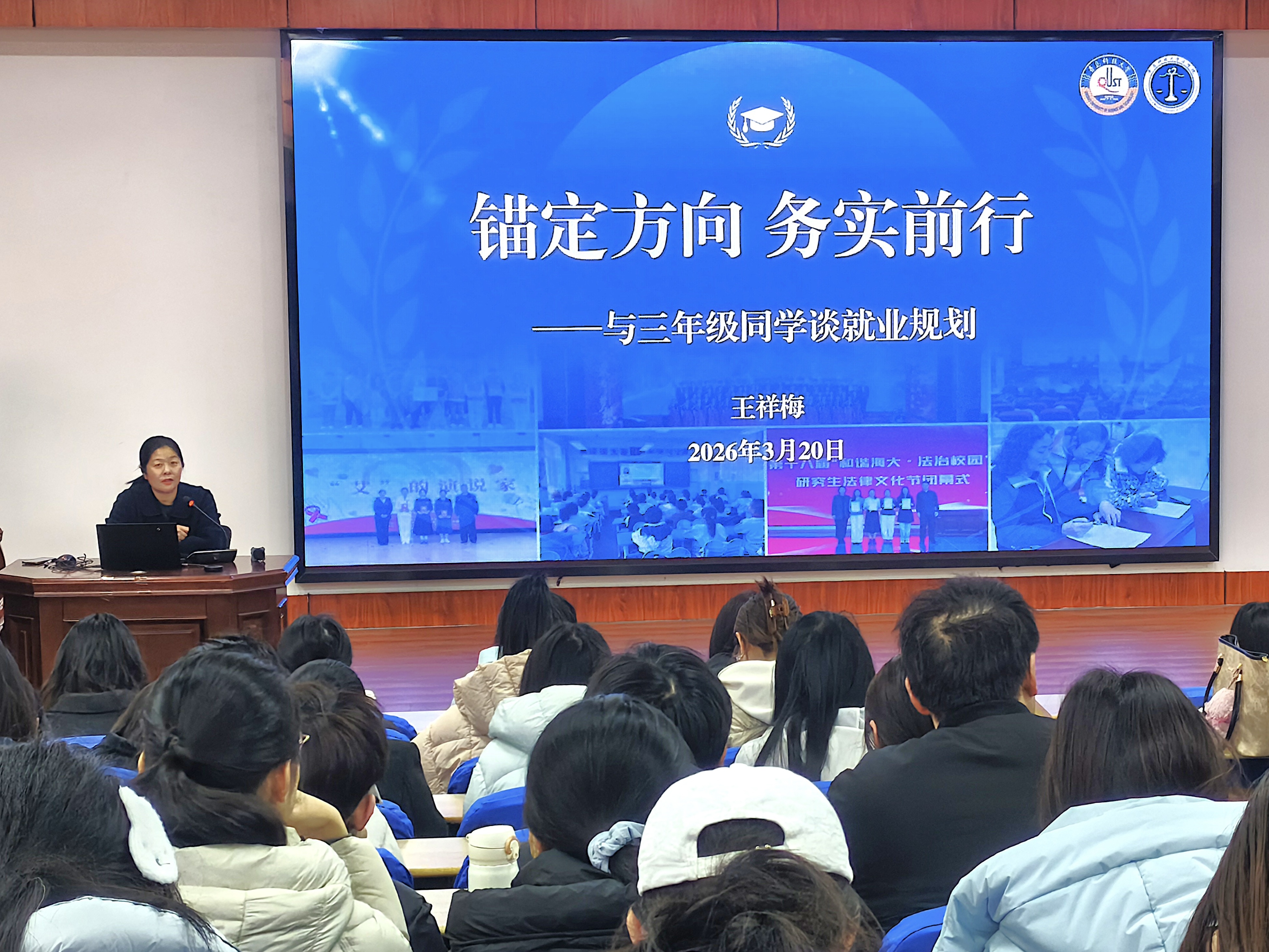 为引导2023级本科生树立科学就业观,强化就业前置意识,提早做好职业规划,3月20日,w88win体育官网入口在模拟法庭举办“锚定方向 务实前行——与三年级同学谈就业规划”就业指导交流会。本次活动由公司党委副书记兼副经理王祥梅主讲,全体2023级本科生参加。
