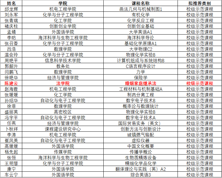根据山东省教育厅《关于开展2022年省级课程思政示范项目建设工作的通知》要求,公司近期组织开展了2022年校级课程思政示范课程评选及山东省课程思政示范课程遴选推优工作。经个人申报,公司推荐,校内外专家评审,本科教学工作委员会审议,共评选出2022年校级课程思政示范课程30门。公司陈建云老师负责的课程《婚姻家庭继承法》获w88win体育官网入口课程思政示范课程。